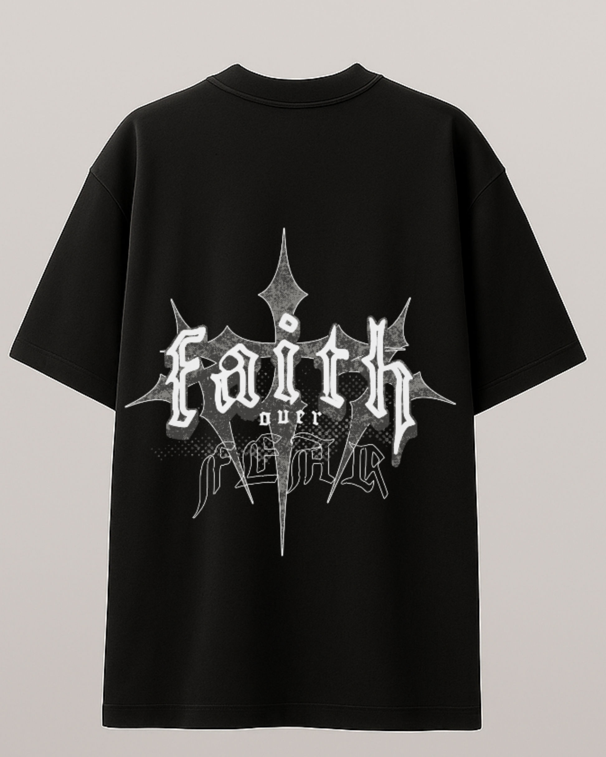 Back Print :FAITH OVER FEAR – Bold Gothic Graphic